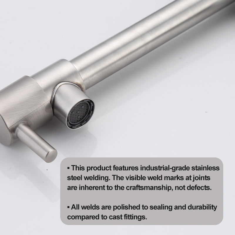 This product features industrial-grade stainless steel welding. The visible weld marks at joints are inherent to the craftsmanship, not defects. All welds are polished to ensure superior sealing and durability compared to cast fittings.