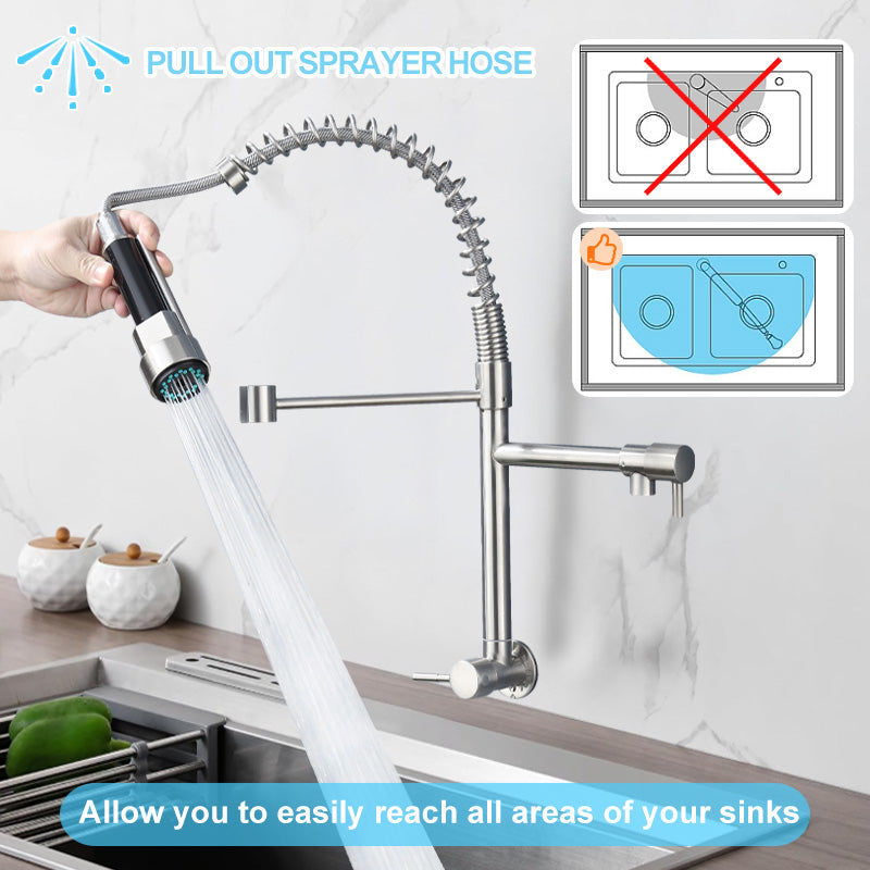 Single-Handle Single Cold Pull-Out Kitchen Faucet Wall Mount Mixer Tap with Two Spray Modes